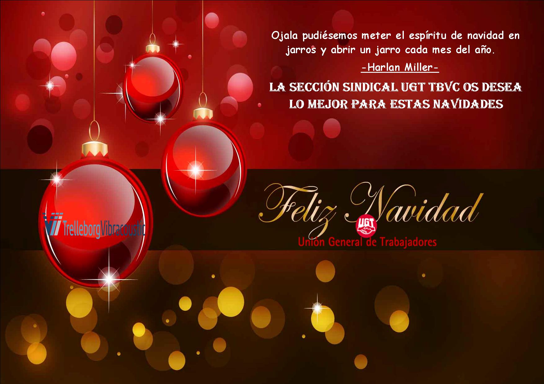 Desde la sección sindical de UGT TBVC, os queremos desear unas felices fiestas, y que como minimo el año que entra sea como minimo como este a ser posible mejor.